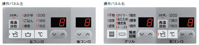 料理に応じてお好みの温度に設定すれば、火加減を自動調節。左右同時に温度調節機能が使えます。