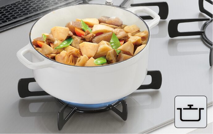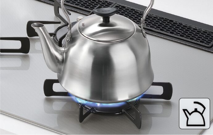 沸騰後に自動で保温、消火が可能。左右どちらのバーナーでもご使用いただけます。