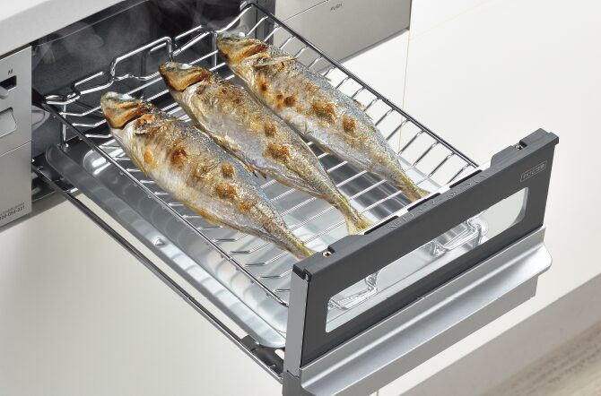 「姿焼」「切身」「干物」の種類と焼き加減を選択すれば、お好みの焼き具合で魚を焼き上げ、自動で消火します。ココットプレート使用時は「焼き魚」に設定すれば火加減はコンロにおまかせ。