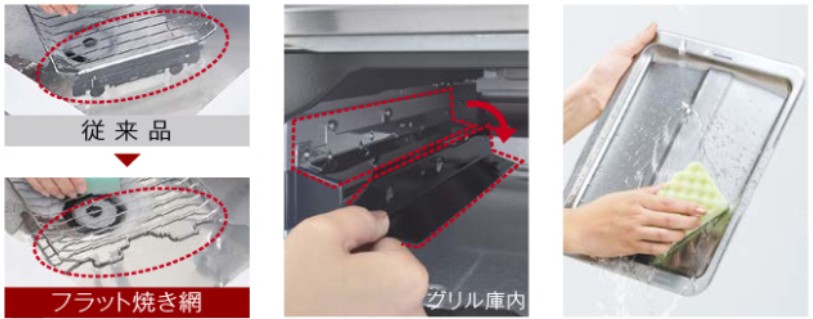 グリルは、取り外しも分解も簡単にできて、お掃除がしやすい。