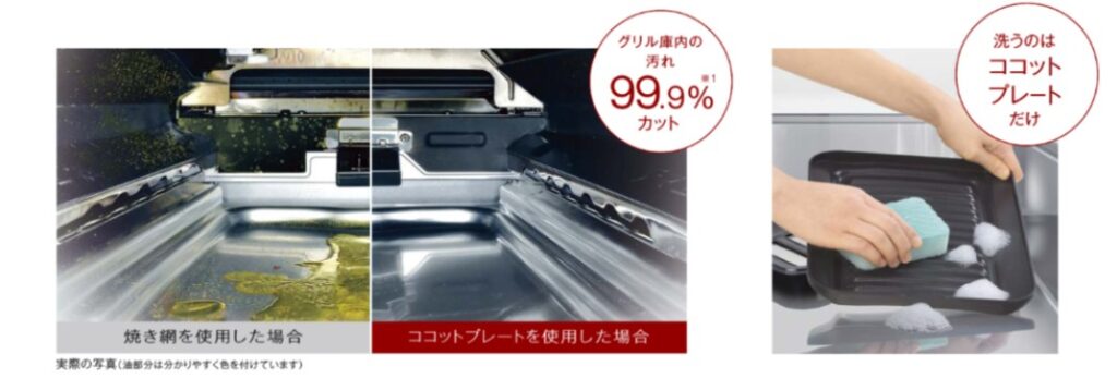 グリル庫内の汚れを99.9%カットしてくれるからお手入れはココットプレートだけ。