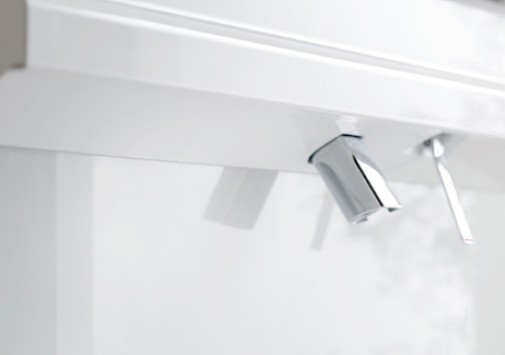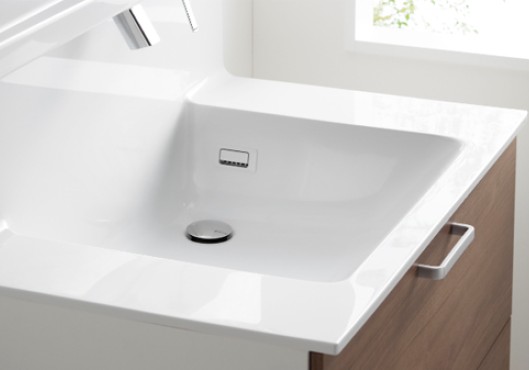 水栓が上部に設置され、水がたまりにくく、お手入れはさっと拭くだけ。