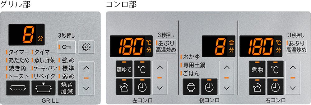 コンロもグリルもお好みの設定時間で自動消火します。