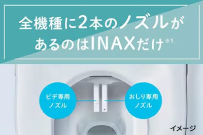 1本はおしり専用、もう1本はビデ専用で、大切なデリケートゾーンの洗浄は、“おしり洗浄時の便がつかない” ビデ専用ノズルが使用できます。