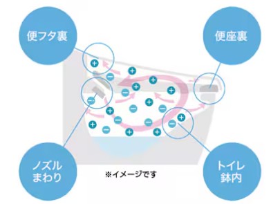 また、トイレのにおいの元となる「におい原因菌」を除菌することでにおいの発生を抑えます。 -